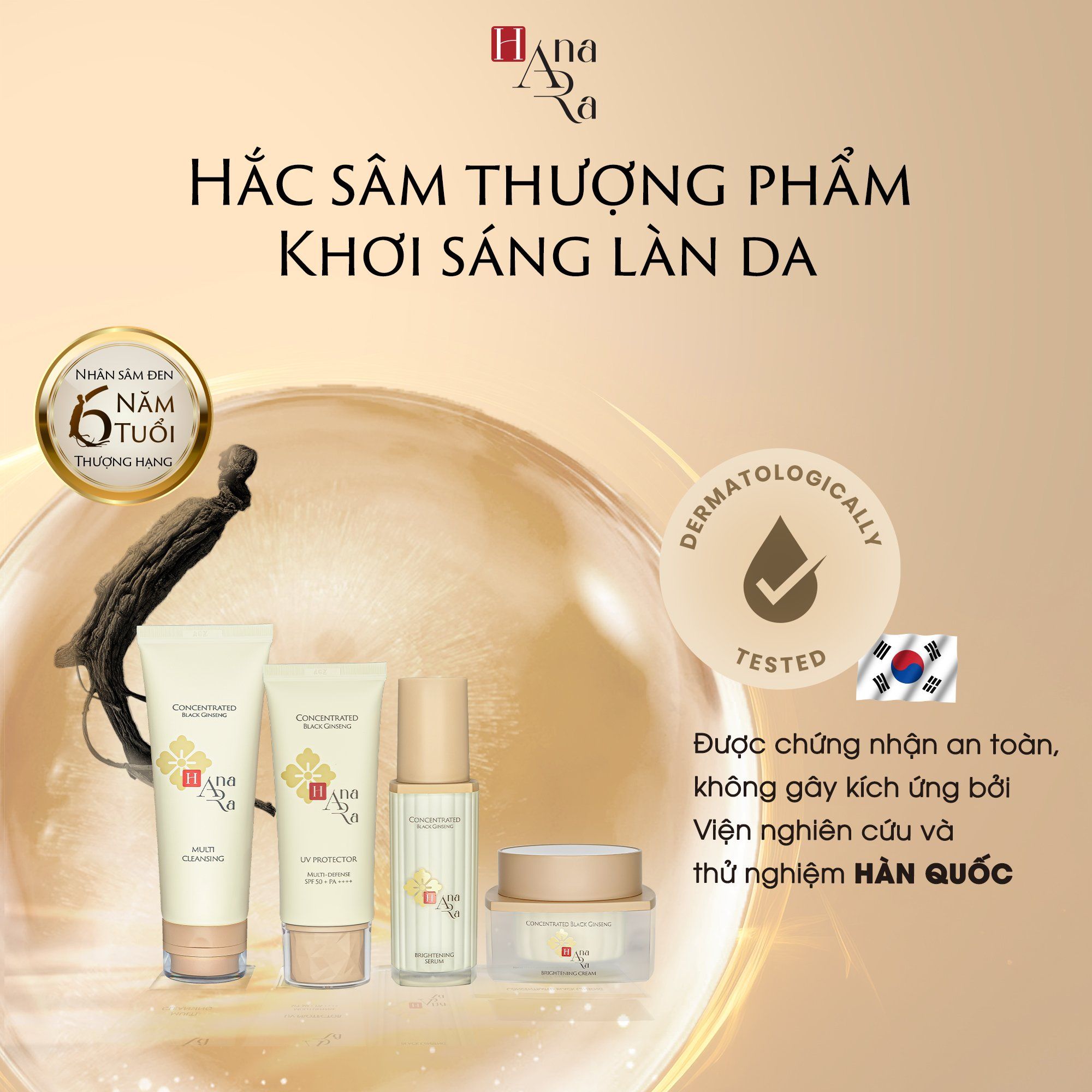 Kem dưỡng trắng Hắc Sâm thượng phẩm Hana Ara mang đến cho bạn sự kết hợp tinh tế giữa dưỡng ẩm, làm dịu, và tái tạo da, giúp bạn nuôi dưỡng làn da trắng sáng, mềm mịn, và căng tràn sức sống.