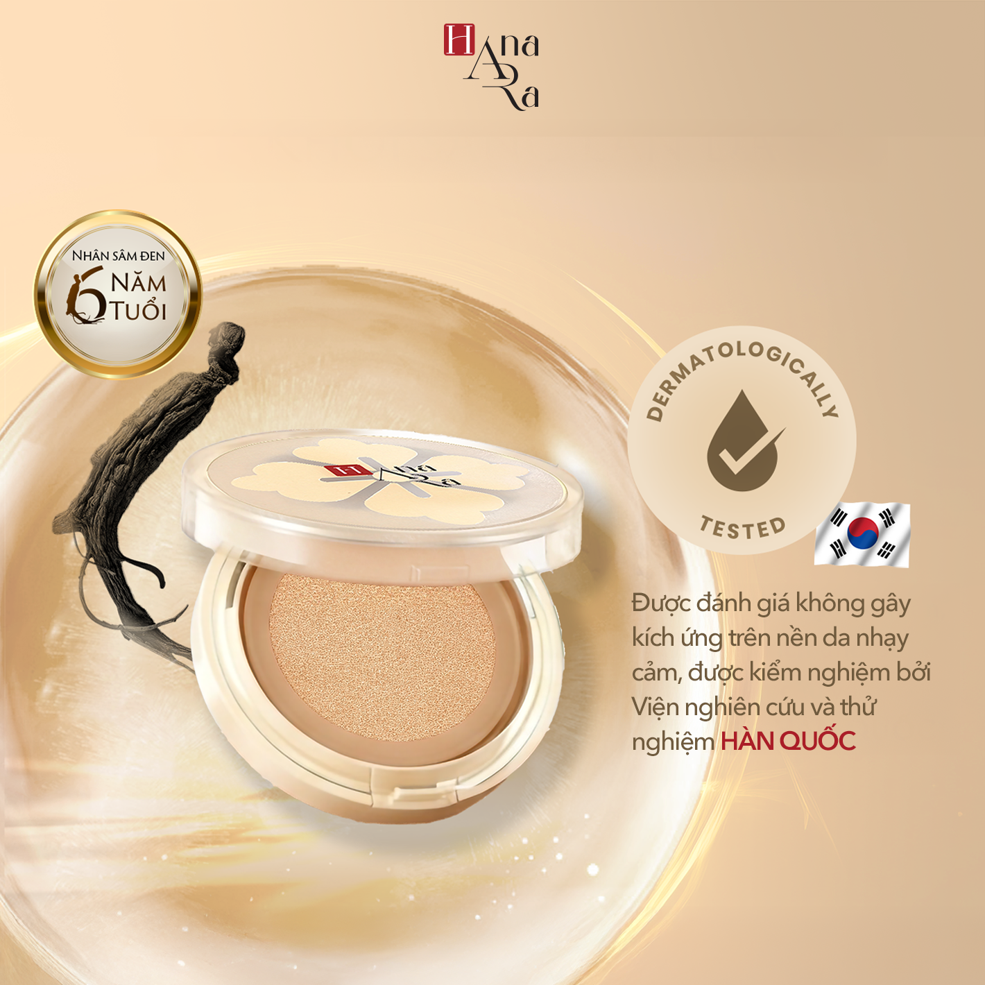 Phấn nước trang điểm và dưỡng da Nhân sâm đen Hana Ara vừa mang đến lớp nền trang điểm mỏng nhẹ, tự nhiên, vừa dưỡng ẩm và dưỡng sáng da.